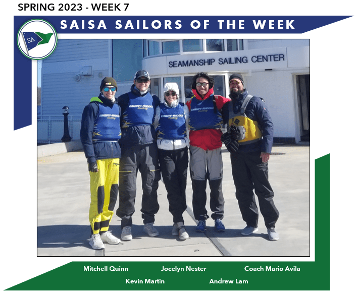 Week 8 also signals the end of the regular conference schedule with the top 6 teams from each division earning an invite to the SAISA Spring Co-Ed Conference Championships, the qualifier for ICSA Nationals. Congratulations to Jacksonville University and College of Charleston for winning SAISA South and SAISA North divisions respectively, as well as Clemson University, NC State University, UNC-Wilmington, University of South Carolina, Georgia Tech, University of South Florida, Eckerd College, University of Florida, University of Miami, and Florida State University all qualify and will compete in Wilmington, NC on April 6-7th.